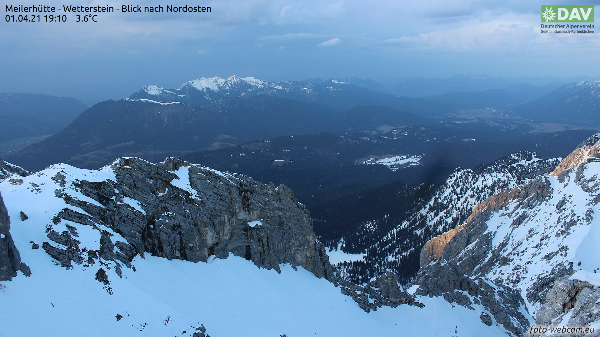 | Blick von der Meilerhütte im Karwendel Richtung Norden. Vermehrtes Wolkenaufkommen (Foto: 01.04.2021) |