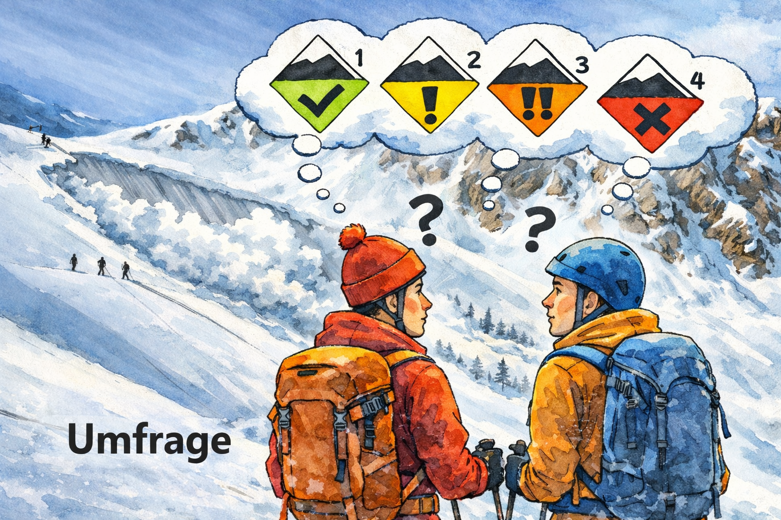 👉 Und genau dafür brauchen wir deine Meinung. Mach bei unserer Umfrage mit. Hilf die Sprache der Lawinengefahrenskala zu verbessern. ⏱️ Dauer: ca. 10 Minuten.