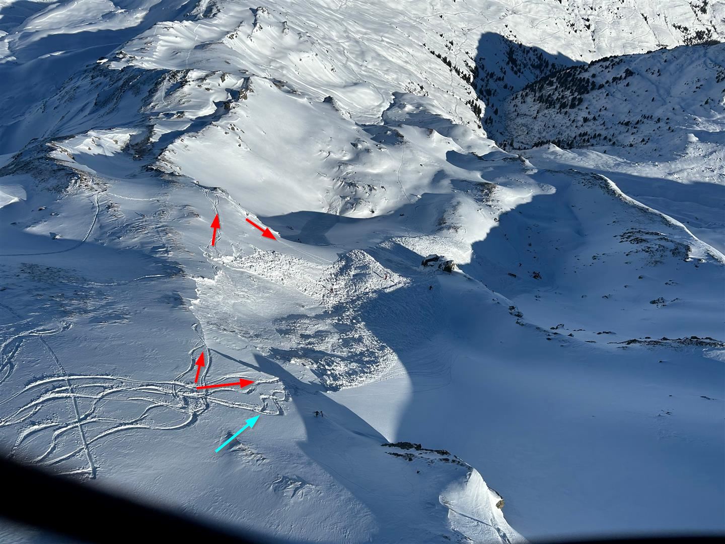 This was a slab avalanche. It triggered on a very steep, east-facing slope at 2500m. The slab avalanche was 300m long and 60m wide. The depth of the fracture varied between 30cm and 130cm. Through the unleashing of the slab avalanche, a secondary slab avalanche was also triggered on the orographically left side, an indicator of an area-wide weak layer in this zone.