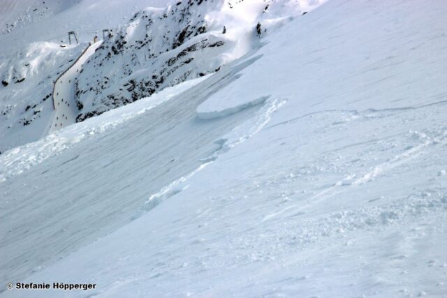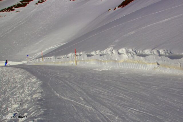 Durante un test di stabilità nell’area del ghiacciaio di Hintertux si era staccato questo pacchetto di neve vicino alla superficie. (Foto: 16.11.2018)