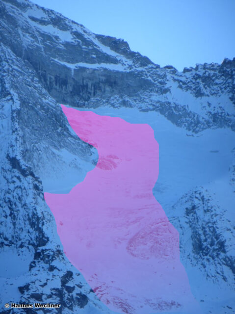 Caduta di valanga al Rettenbachferner del 03.11.2018. La valanga si era distaccata al livello del ghiaccio di ghiacciaio. |