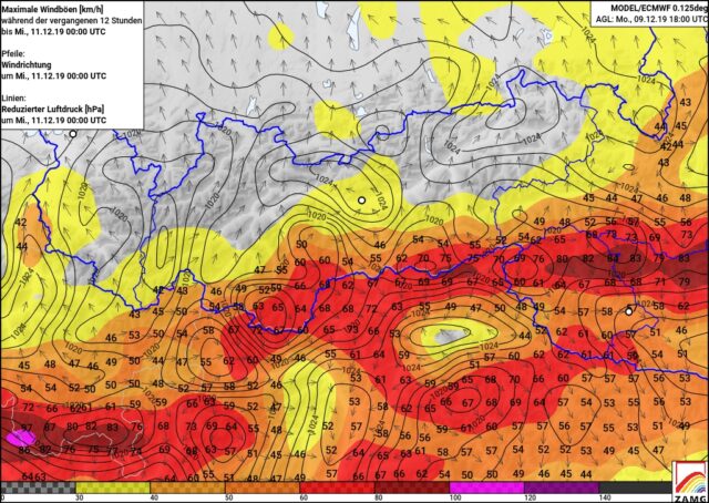 Secondo l’Istituto meteorologico ZAMG, il vento da sud girerà domani (13/12) ad ovest e diventerà forte o tempestoso. Nelle regioni occidentali cadranno tra 10 e 15 cm di neve, a livello locale fino a 20 cm; in direzione est le nevicate sono più ridotte, arrivando a 5 – 10 cm di neve fresca. Il 14/12, un fronte caldo passerà il Tirolo. In montagna rimarrà tempestoso. La direzione principale del vento è ovest. Al di sopra dei 1500 m circa cadranno 20 cm circa di neve.
