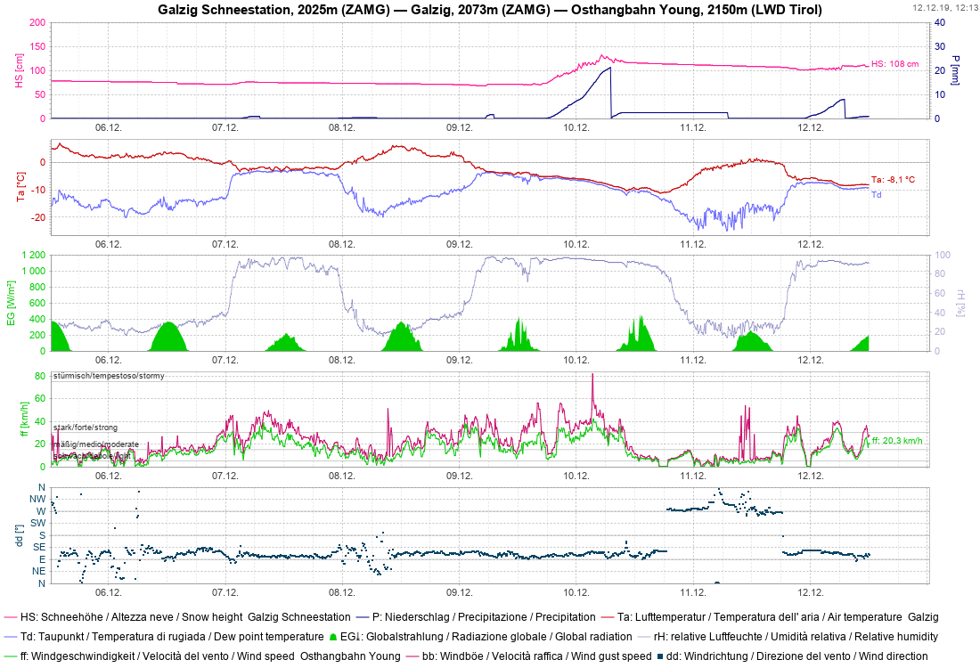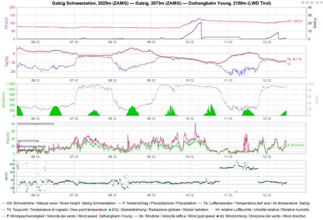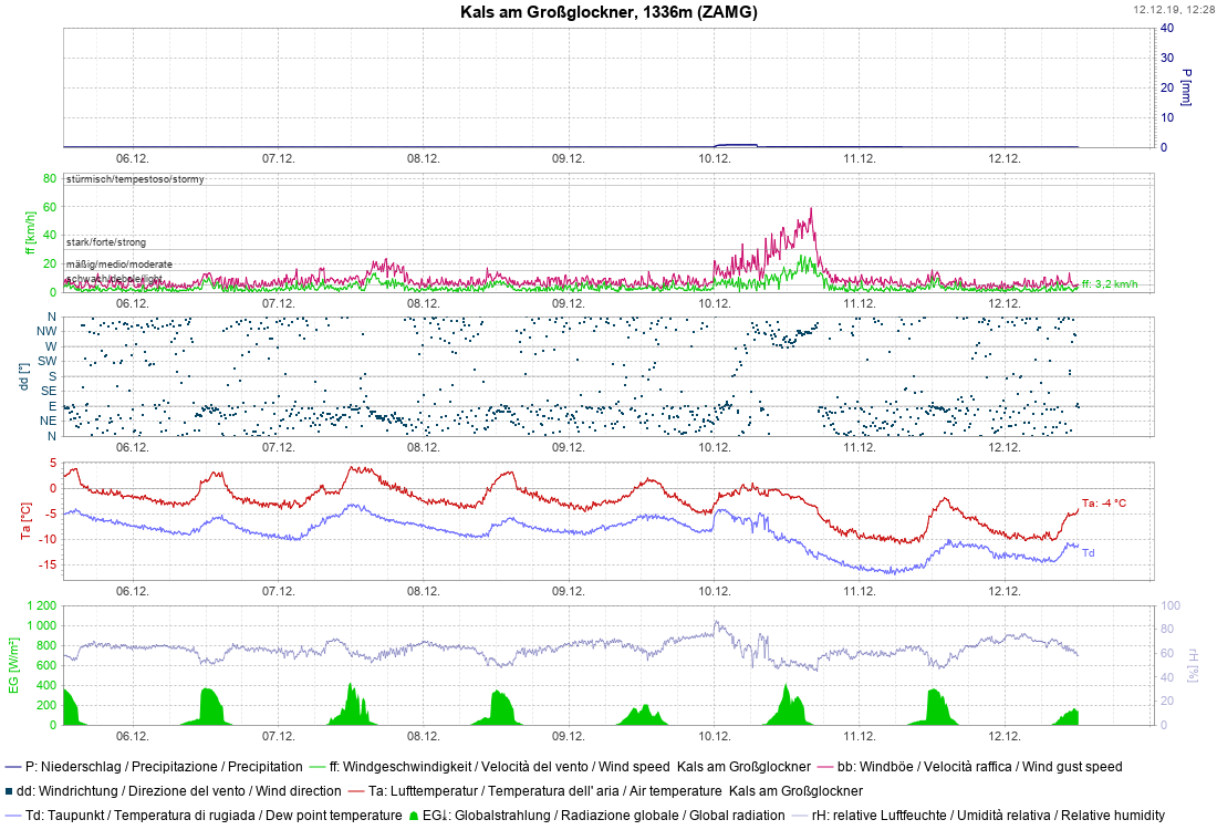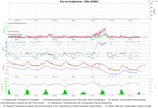 Stazione meteo di Kals: notevole era soprattutto il vento forte del 10/12 nel Tirolo dell’Est