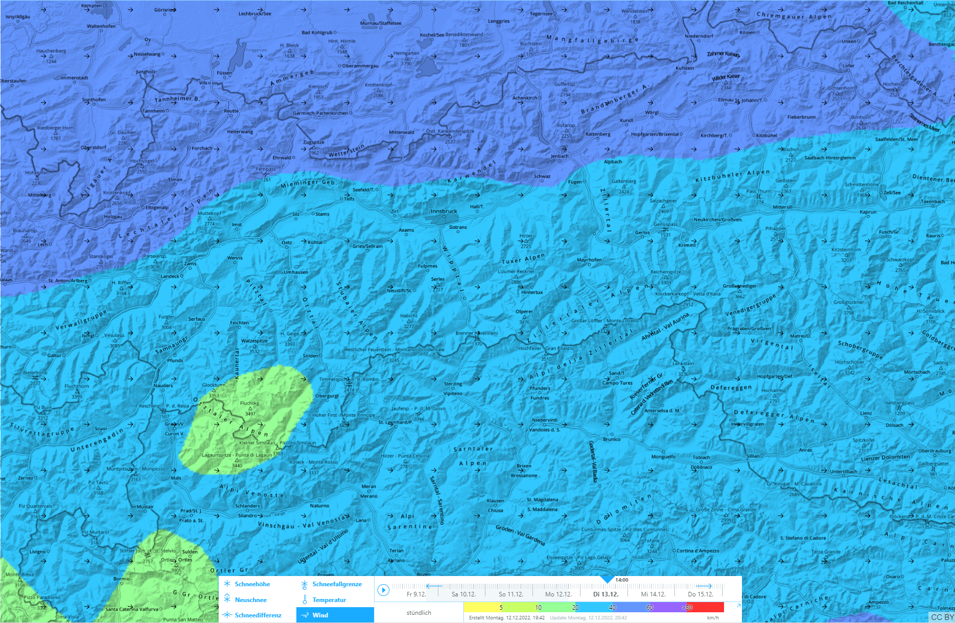 Previsioni di vento per martedì 13.12.2022 |