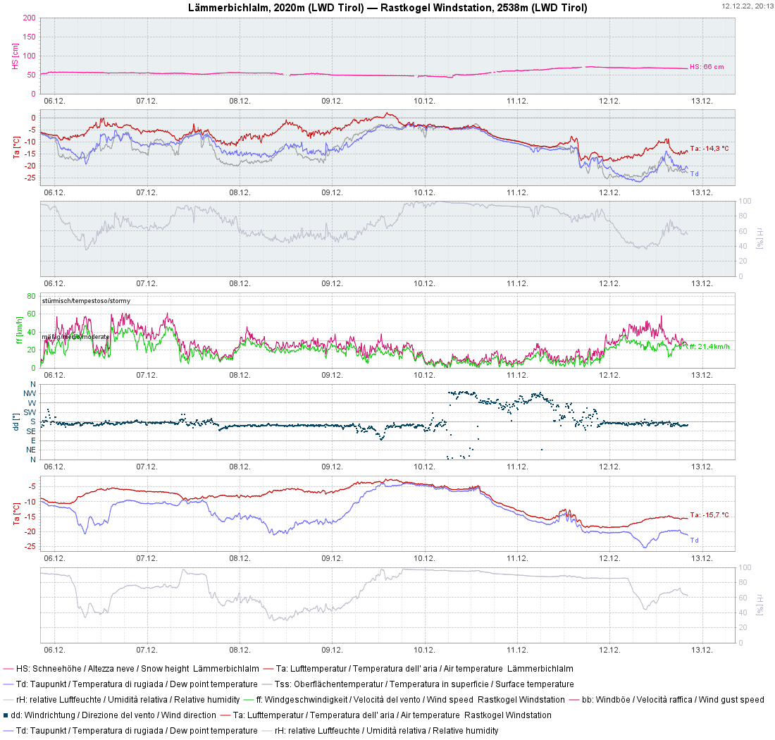 Mentre nelle quote basse e medie spesso non soffia il vento, nelle quote più alte il vento e da moderatamente forte a forte. |