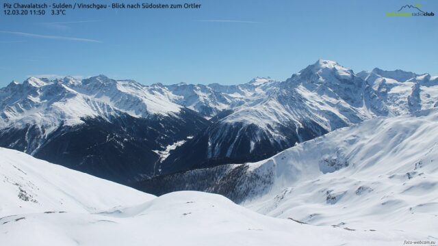 | Blick vom Chavalatsch zum Ortler. Traumhaftes Wetter und viel Schnee. (Foto 12.03.2020) |
