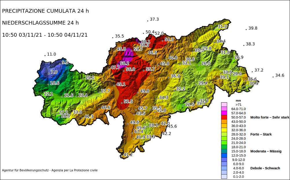 | Niederschlagssumme der letzten 24 h. |