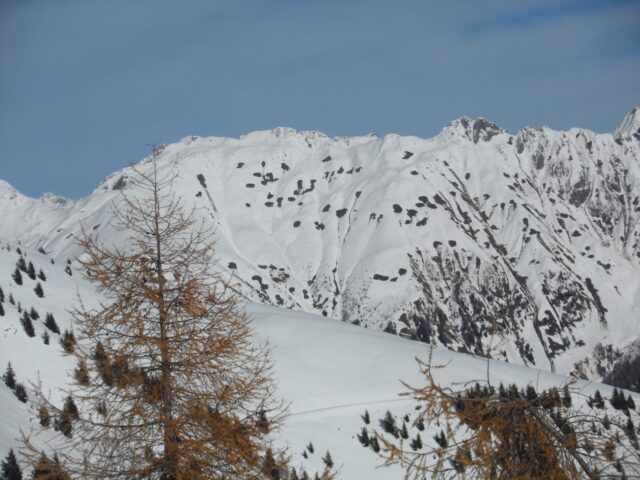 Weiters kann man derzeit viele – für den Frühwinter typisch – Gleitschneelawinen beobachten. Vor allem an steilen Wiesenhängen unterhalb von 2300 m. Die im Boden gespeicherte Wärme wird nach dem Schneefall an die Schneedecke abgegeben und schmilzt dadurch die untersten Zentimeter auf. Der Wasserfilm wirkt dann als Gleitschicht, auf der die Schneedecke abgleiten kann. Die Aktivität der Gleitschneelawinen wird vermutlich, in den kommenden Tagen abnehmen.