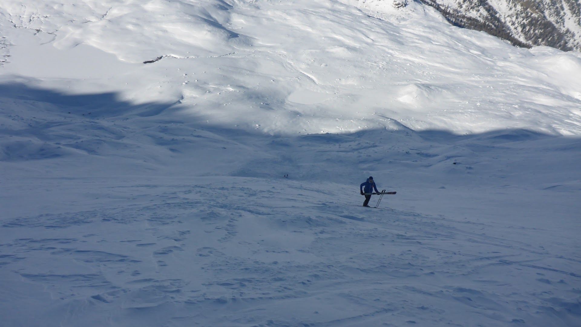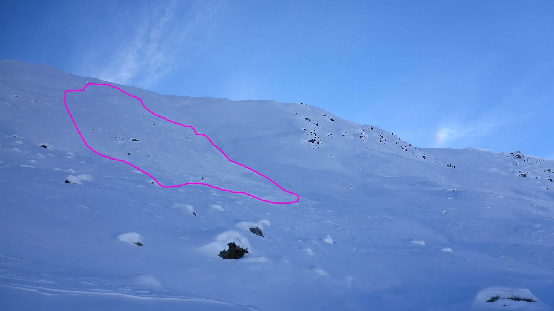 La zona di distacco della valanga era solo in parte individuabile e difficilmente primetrabile: il forte vento di martedì 27/11 aveva cancellato gran parte delle tracce costruendo un nuovo lastrone di neve ventata.