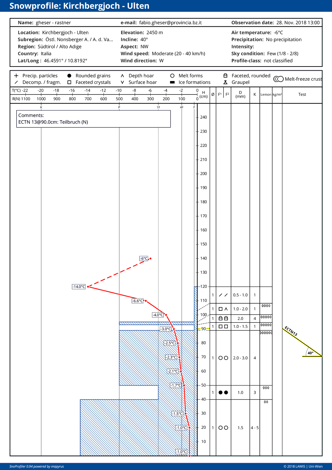Dalle resistenze del manto nevoso si capisce bene che il punto debole è il collegamento tra la neve vecchia e la neve fresca.