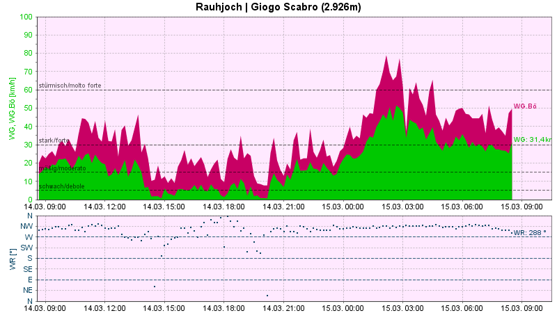 Misurazioni del vento della stazione automatica del Giogo Scabro in val Passira