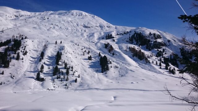 Al di sopra del limite del bosco il vento ha rimaneggiato intensamente la neve e, specialmente dietro bruschi a cambi di pendenza, in conche e canali, si sono formati fragili accumuli di neve ventata.