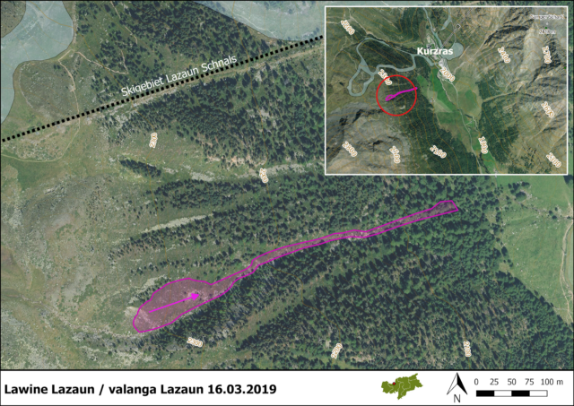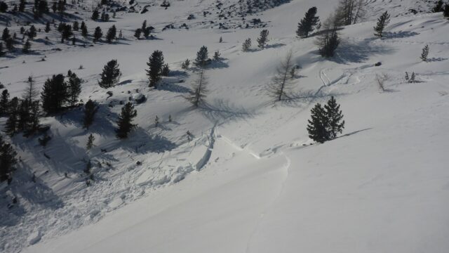 Il problema principale del fine settimana passato era rappresentato dagli accumuli di neve ventata. Uno di questi accumuli è stato anche la causa dell’incidente mortale verificatosi sabato 16.03 in val Senales, in prossimità dell’impianto di Lazaun. Gli sciatori fuoripista stavano discendendo un canale, quando sì è staccato un lastrone largo ca 90 m.