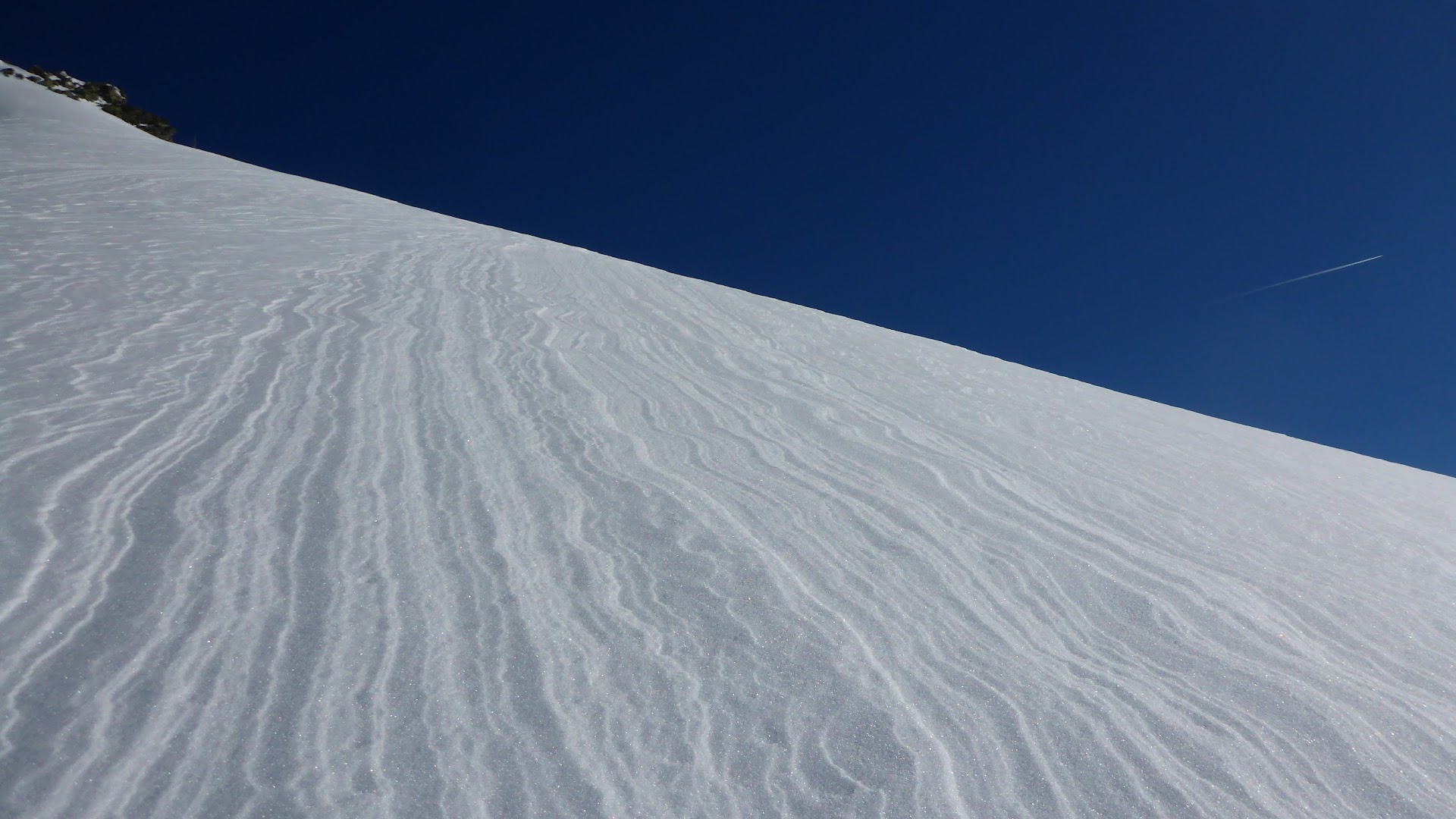 Tutt’ora, bisogna prestare attenzione agli accumuli di neve ventata. Questi si trovano in corrispondenza di bruschi cambi di pendenza, in conche e canali al di sopra di ca 2500 m e possono, a livello isolato, essere distaccati ancora con un debole sovraccarico. In alcune zone si trovano anche cornici in prossimità delle creste, dove sottovento si accumula la neve ventata. Per evitare la rottura di una tale cornice, è importante riuscire a non sovraccaricarla. Inoltre, non bisogna sostare sotto le cornici.