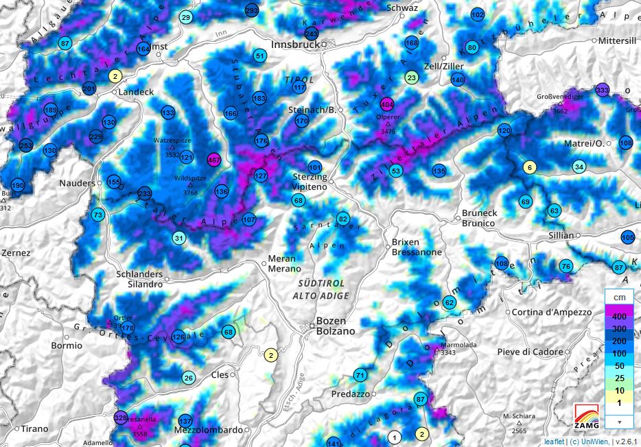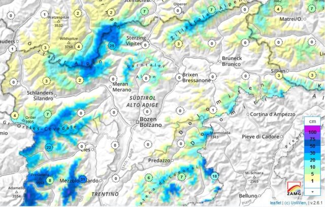 | Altezza della neve e misurazioni attuali sui campi neve. I dati attuali si possono trovare al seguente link |
