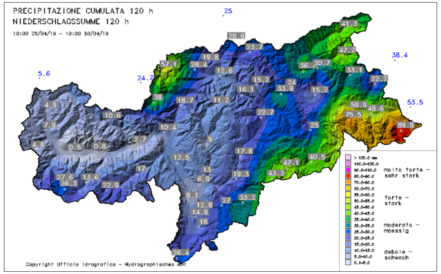 | Precipitazioni cumulate dal 25.04.2019 al 30.04.2019.
