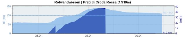 Sulle montagne dell’Alto Adige le condizioni invernali prevalgono ancora oggi. Soprattutto nelle zone settentrionali sopra i 1800 m c’è ancora un innevamento superiore alla media. Oltre alla neve dell’inverno, il tempo variabile dell’ultima settimana ha portato altra neve fresca. Le precipitazioni erano spesso convettive, il che significa che erano localmente molto variabili di intensità. Abbiamo anche ricevuto segnalazioni in alcune zone di neve pallottolare, il che è tipico delle precipitazioni convettive. Lo scorso fine settimana la combinazione di un fronte freddo e una bassa pressione sull’Adriatico ha causato abbondanti precipitazioni soprattutto sulla parte orientale della provincia. Il limite della nevicata era a circa 1000 m.