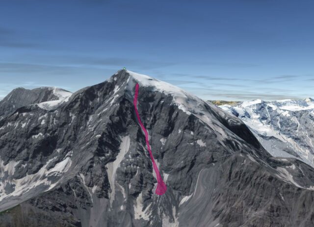 | la valanga dell’incidente nella parete nord dell’Ortles 19.04.2019 (visualizzazione Google Earth). |