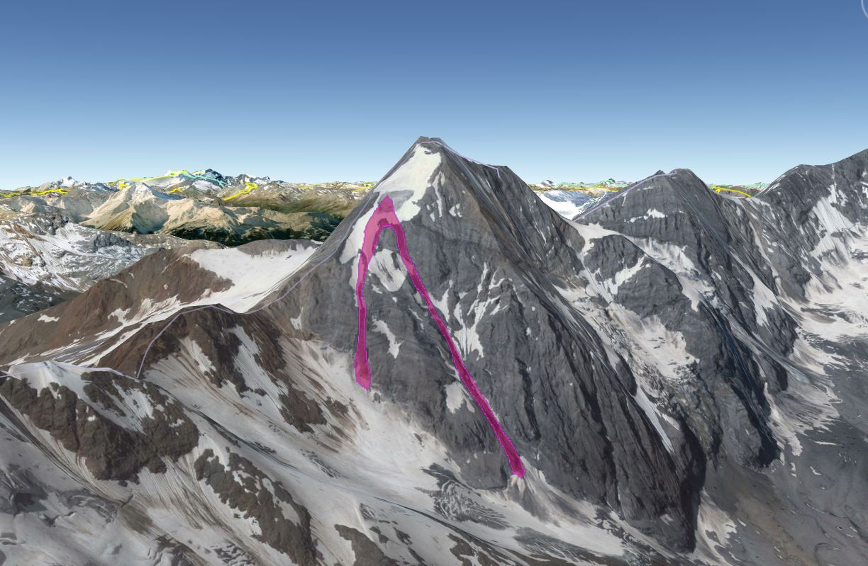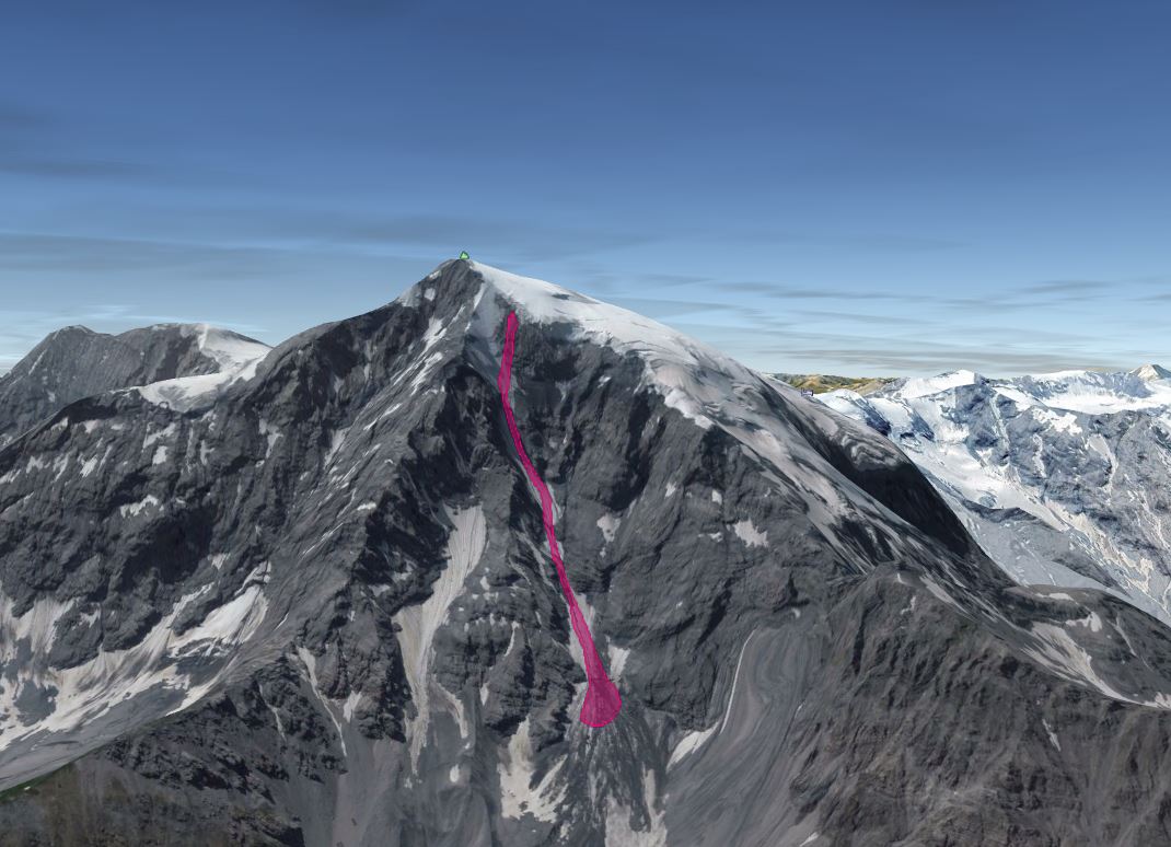 | la valanga dell’incidente nella parete nord dell’Ortles 19.04.2019 (visualizzazione Google Earth). |