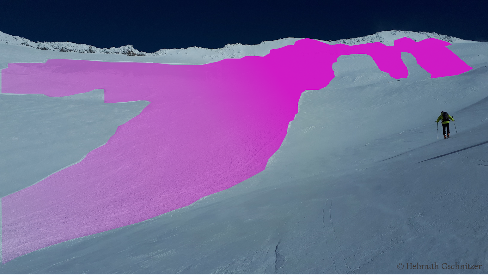 freddo su caldo è insidiosa, in quanto lo strato debole non è ancora presente durate la nevicata, ma si forma solo nel corso dei giorni a seguire. Le comunicazioni ricevute relative ai versanti meridionali d’alta quota delle zone di Senales e Selva dei Molini confermano la presenza dello strato debole. Sotto al Möselekopf nel comune di Selva dei Molini si è verificato pure un distacco a distanza di una valanga a lastroni.