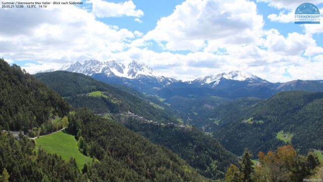 | Contrasti: in valle situazione primaverile con prati verdi e sui monti condizioni invernali. Vista dall’osservatorio di Collepietra verso il Latemar: (Foto: https://www.foto-webcam.eu/, 20.05.2021) |