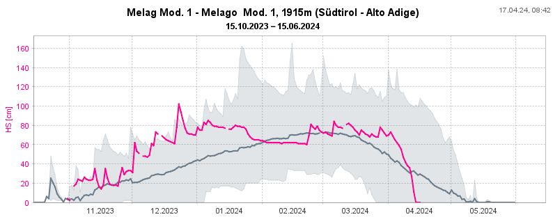 A partire dalla giornata di martedì 16 aprile le temperature sono calate nuovamente verso valori consoni per il periodo: da mercoledì 17 aprile lo zero termico si è assestato sui 1400 m, e il problema valanghivo di neve bagnata non è stato più rilevante.